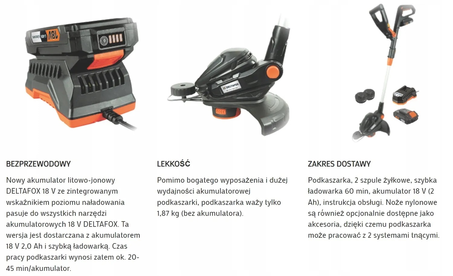 Акумуляторний тример DELTAFOX 18V DG-CGT 1825 - в комплекті 2 батареї та зарядний пристрій + запасна котушка