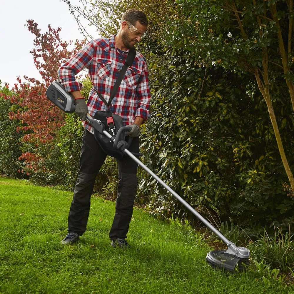 Тример працює від літій-іонного акумулятора 48 В (4 А·год) (продається окремо), що гарантує тривалий час роботи та швидку зарядку. Відсутність кабелів означає повну свободу пересування, можливість працювати в будь-якому місці і відсутність вихлопних газів - екологічно і комфортно.