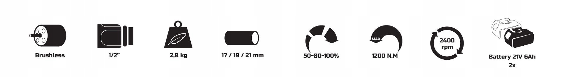 - Вага гайкового ключа з акумулятором: 2,8 кг;