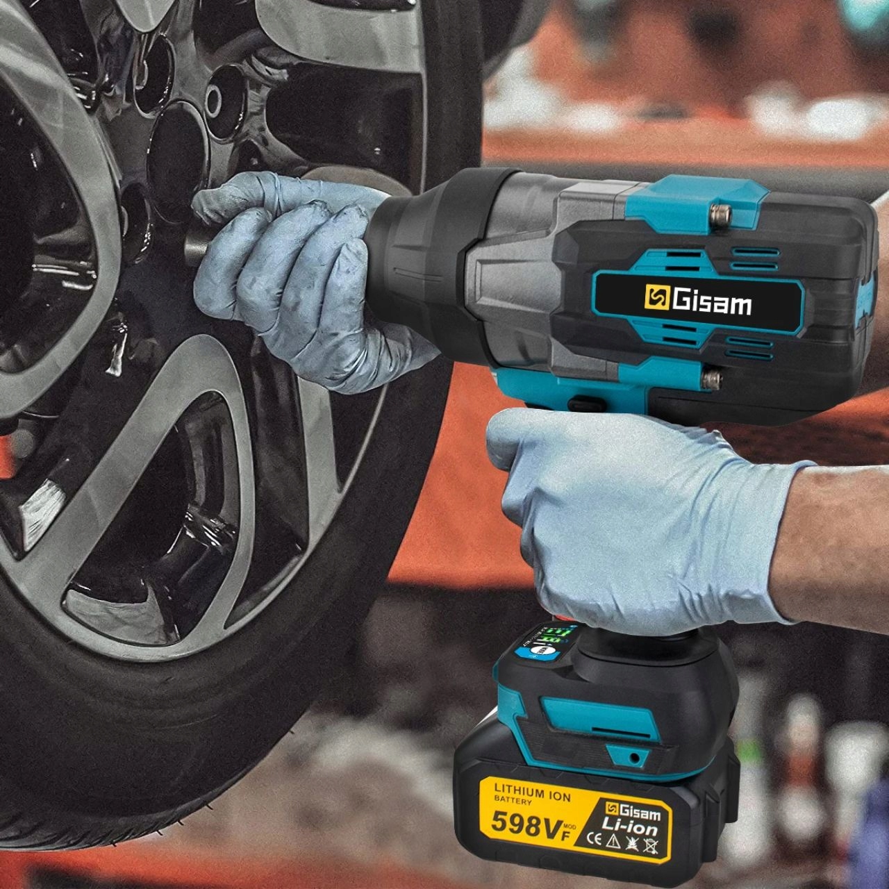 Безщітковий ударний гайковерт GISAM ідеально підходить для автосервісів, майстерень і для домашніх робіт, пов'язаних із заміною коліс. Ідеально підходить для відкручування та закручування колісних болтів на автомобілях, мотоциклах та інших транспортних засобах.