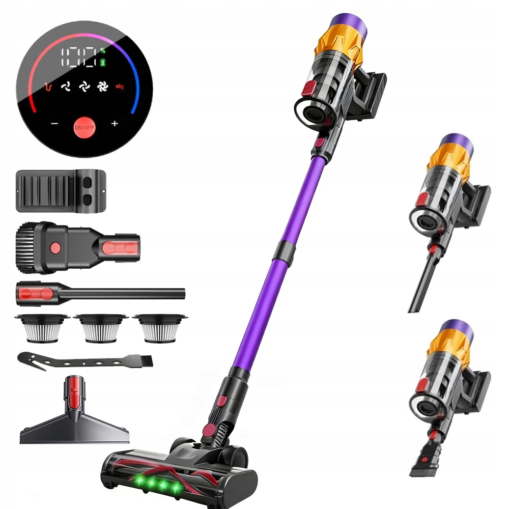 Зустрічайте універсального помічника в прибиранні! Цей потужний бездротовий вертикальний пилосос поєднує в собі потужність основного пилососа зі зручністю легкого ручного пилососа. Завдяки повному набору з 6 аксесуарів ви зможете ідеально очистити будь-яку поверхню у вашому домі, від твердих підлог і килимів до диванів, автомобілів і важкодоступних куточків. Його сучасний дизайн і передові технологічні функції роблять прибирання легким, швидким і ефективним.