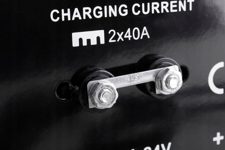 Пристрій підходить для заряджання як від 12 В, так і від 24 В. Випрямляч може заряджати як один акумулятор, так і кілька. Залежно від способу підключення ми можемо заряджати багато батарей, з’єднаних паралельно з напругою 12 В (або 24 В, якщо батареї мають таку напругу) або дві батареї 12 В, з’єднані послідовно. У цьому випадку підключіть плюсовий кабель до виходу 24 В.