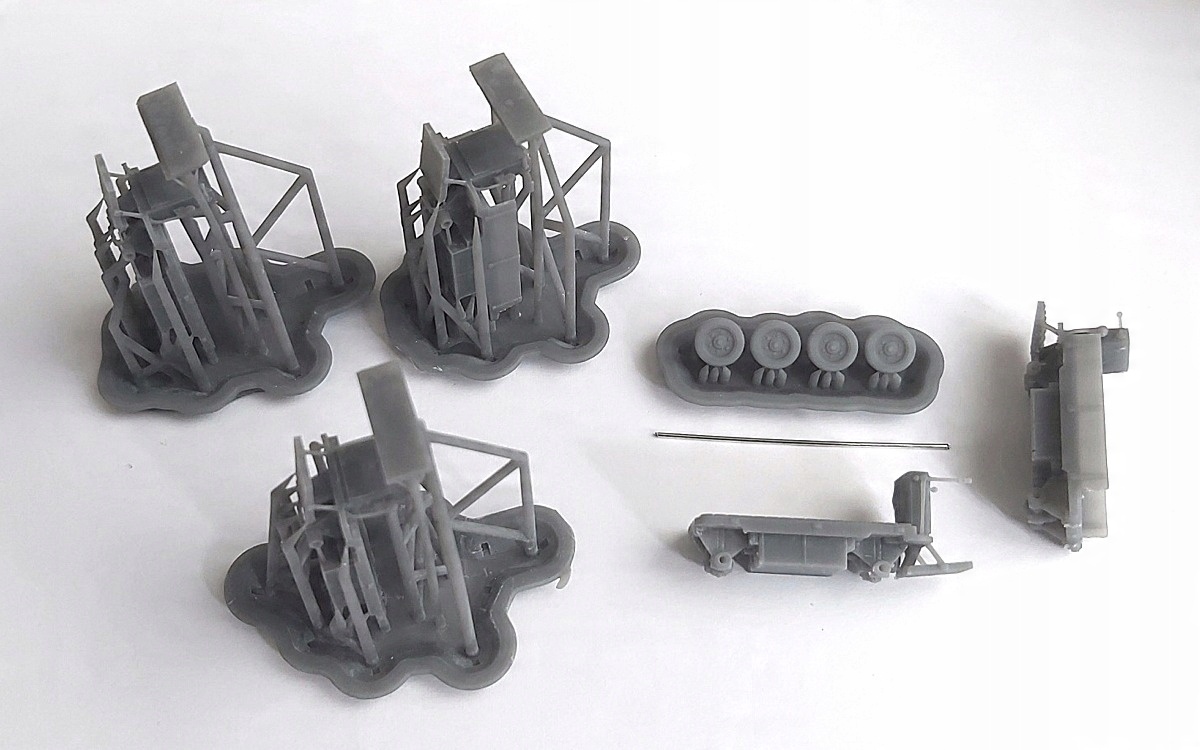 Модель знаходиться на підносі, захищеному та загартованому УФ-світлом. Ви повинні самостійно зрізати опори за допомогою маленьких гострих плоскогубців. Додатковий дах на опорах захищає виступаючі з передньої частини моделі ручки під час транспортування. Відрізання опор слід починати з відрізання опор на шасі, потім з іншого боку моделі, потім опори з дахом і, нарешті, опори в самому низу моделі біля лотка.