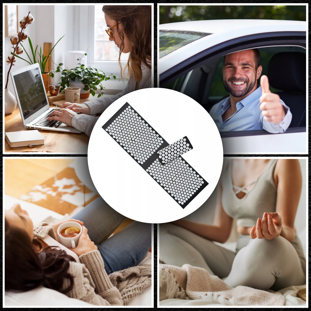 Використання килима для здоров'я для акупресури надзвичайно просте. Ви можете використовувати матовий килимок Acupressure, лежачи, сидячи , напр. під час роботи або стоячи . Просто покладіть його на підлогу, ліжко або стілець і повільно покладіть голову до подушки. Пам'ятай це!