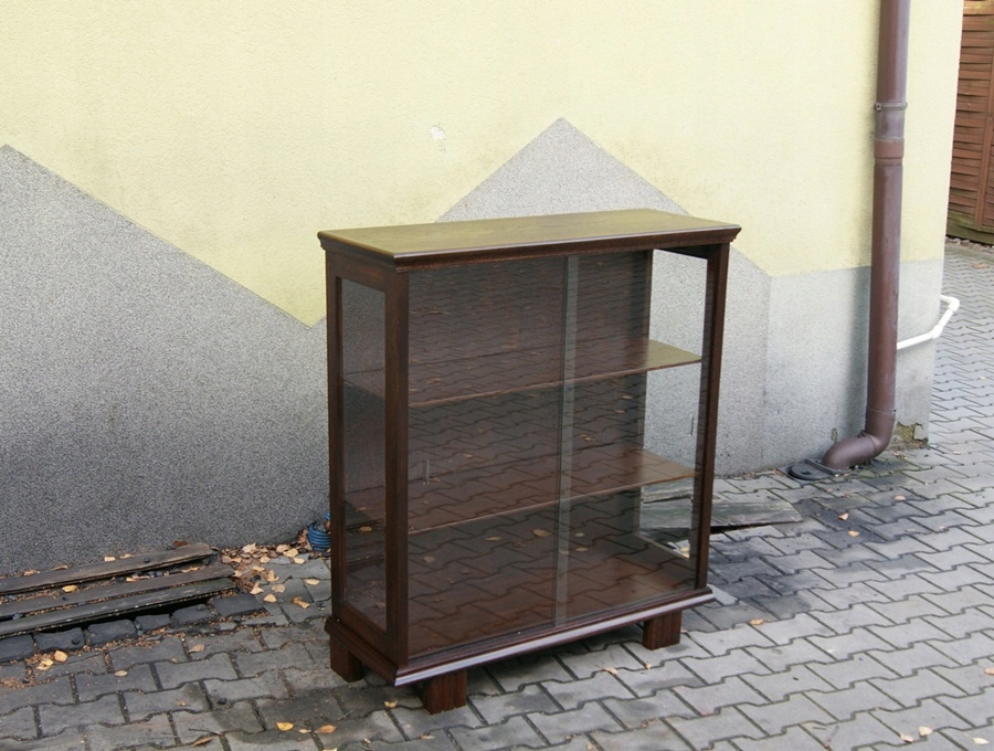 Акуратна дубова сервантка __ вітрина _ книжкова шафа після реставрації __