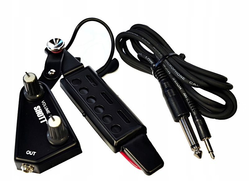 Цей акуратний пристрій вставляється в звуковий отвір гітари та дозволяє підсилювати інструмент через систему електромагнітних перетворювачів. Встановити кріплення не проблема. Ми просто ставимо його під струни і просуваємо верхню пластину в спеціальний слот в звуковому отворі. Потім натискаємо на другу лапку, щоб стабілізувати кріплення. Регулятори гучності та тембру можна регулювати завдяки рухливому шарніру, щоб вони не заважали нам під час гри. Додатковою перевагою є знімний легкий кабель з двома штекерами Jack - 3,5 мм вставляються в приставку і 6,5 мм в підсилювач. Знімач невеликий, тож поміститься в будь-який футляр.