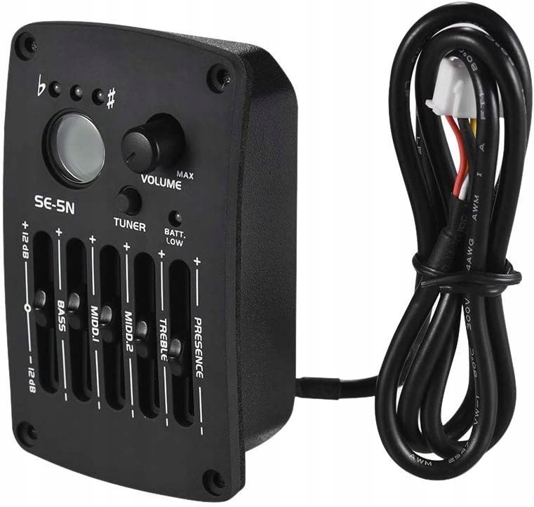 Підсилювач звуку з 5 еквалайзерами для класичних гітар. Регулювання низьких частот середні 1 2 високі та присутність. Вбудований тюнер зі світлодіодним індикатором. З 635 мм і вихідними гніздами XLR для підключення гучномовця. Живиться від акумулятора 9 В з індикатором рівня заряду, акумулятор не входить в комплект поставки.