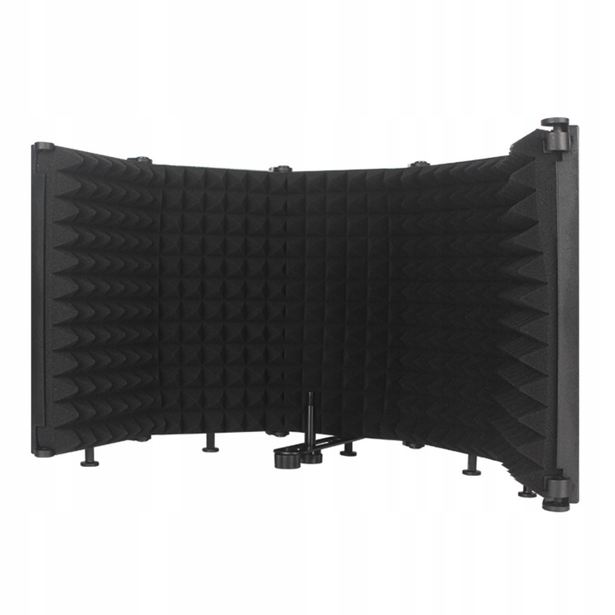Конструкція складається з п’яти панелей, які можна вільно регулювати під різними кутами, забезпечуючи оптимальний простір для мікрофона. Ефективним шумопоглинаючим фоном виступає спеціально розроблена конічна технічна губка.