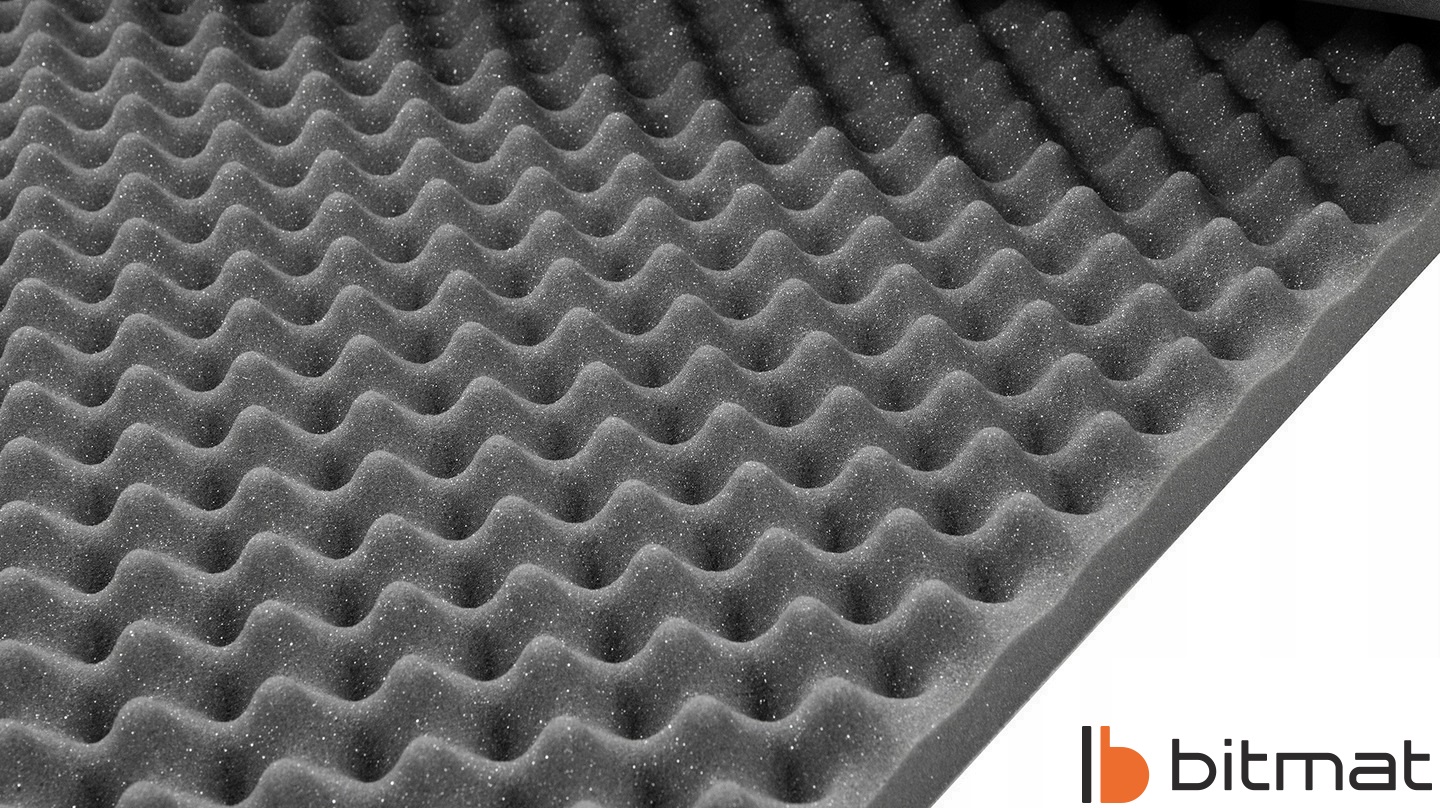 Акустична піна Bitmat, яка також називається акустичною панеллю, виготовлена зі пінополіуретану, а її структура складається з відкритих клітин. Використання хвильового профілю ідеально підходить для студій і музичних кімнат/голосових кабін, оскільки покращує розбірливість мови та вокалу. Це оптимальне застосування, яке за відносно низьких витрат дозволяє запобігти реверберації, покращити якість звуку у житлових і робочих кімнатах, створити сучасний дизайн.