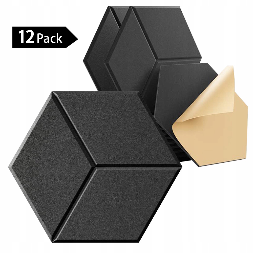 💡💡 Відкрийте для себе ідеальне поєднання дизайну та функціональності! Представляємо набір з 12 самоклеючих акустичних панелей модної, гексагональної (гексагональної) форми та універсального чорного кольору. Кожна панель розміром30 см x 26 см і товщиною 0,9 см виготовлена зполіефірного волокна високої щільності. Його пориста структура ефективно поглинає звукові хвилі, зменшуючи небажану реверберацію, луну та шум у приміщенні. Завдяки цілісному міцному клейовому шару на тильній стороні монтаж надзвичайно простий - просто зніміть захисну плівку та приклейте панель на будь-яку гладку та чисту поверхню: стіну, стелю чи навіть двері. Готова композиція не тільки покращує акустику, але й являє собою сучасну геометричну прикрасу стін.