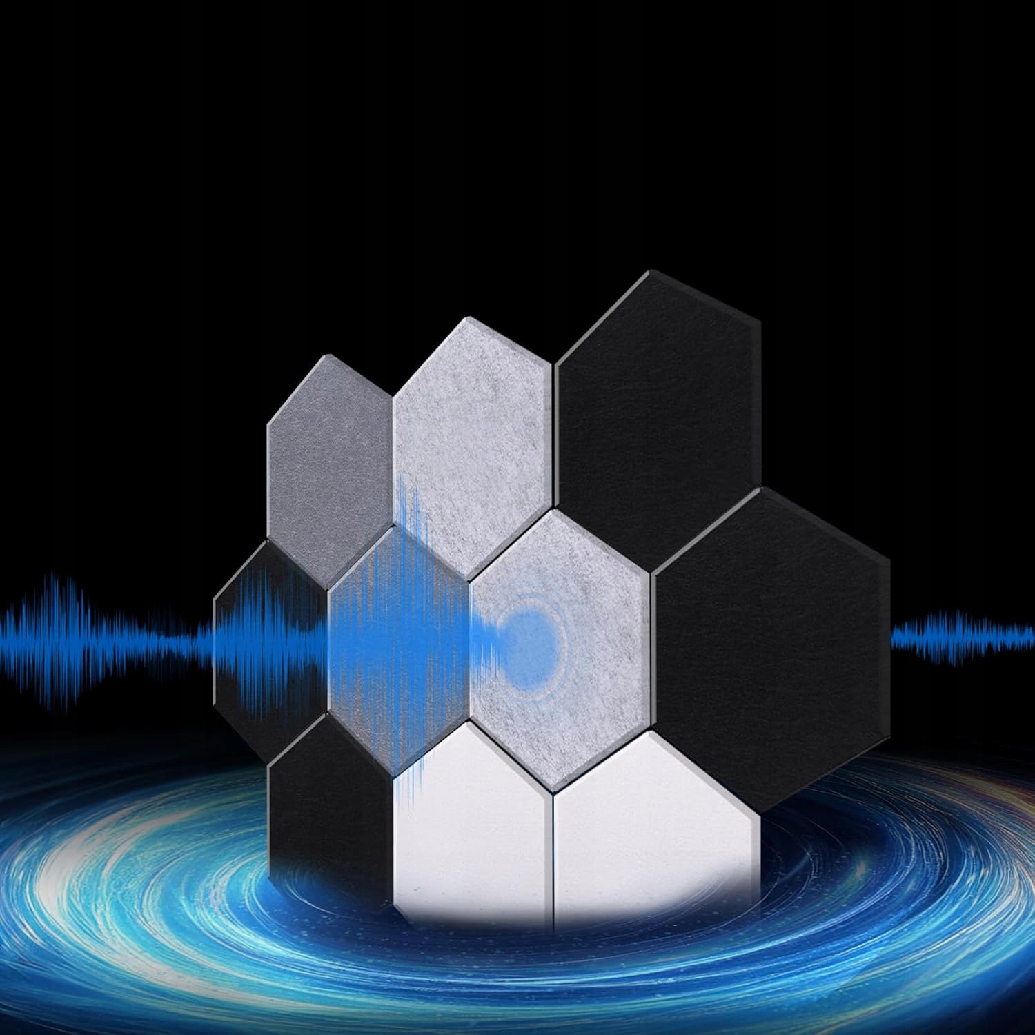 💎Практичний і красивий: чим вища щільність, тим краща звукоізоляція та ефект зменшення шуму. Його товщина всього 0,9 см, тому він не займає місця. Унікальний шестикутний дизайн забезпечує ідеальне поєднання кожного елемента. Ви також можете вирізати їх самостійно або оформити у вигляді колажу з іншими фігурами.