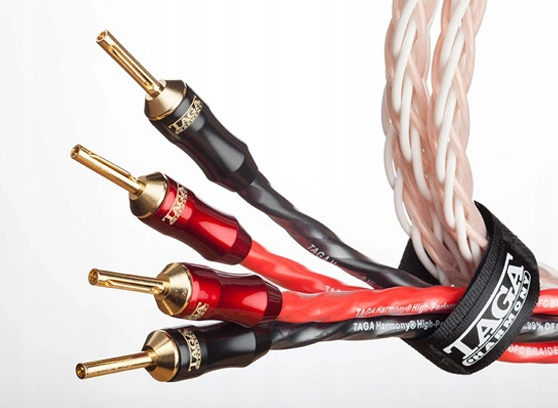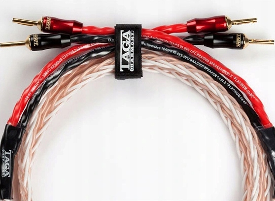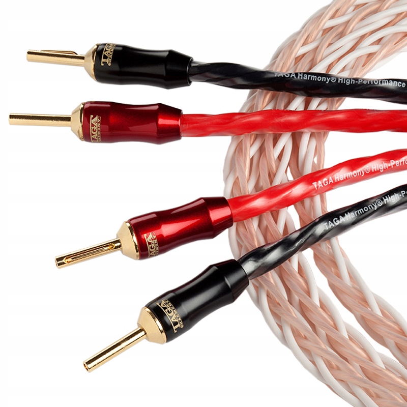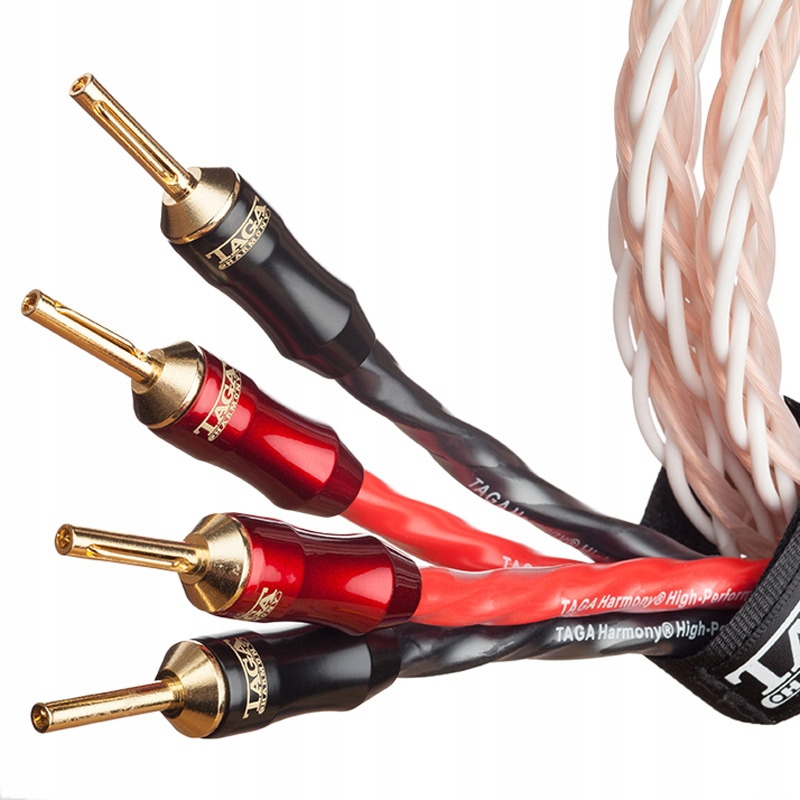 Набір з двох акустичних кабелів відмінної якості Taga Harmony PLATINUM-18-8C довжиною 2,5м. PLATINUM-18-8C — це багатопровідна оплетка з 8 провідниками 1,2 мм, виготовленими з чистої безкисневої міді OFC 99,99%, закінченої високоякісними банановими штекерами виготовлено з позолоченої міді.
