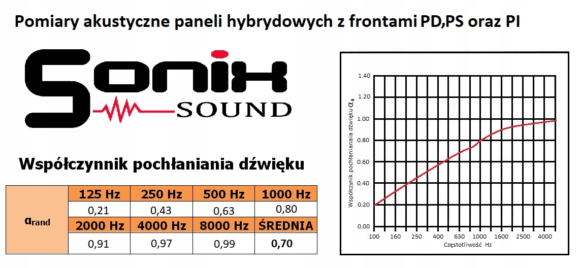 гібридна акустична панель Sonixsound - гібридні акустичні панелі SonixSound - це комбінація сертифікованої товстої акустичної піни зі структурою відкритих пор і передньої пластини з відповідною перфорацією. Завдяки цій комбінації ми отримали панель, що з'єднує функції дифузорів та звукових поглиначів. Панелі мають великий вплив на якість звуку в середньому - високочастотному діапазоні.