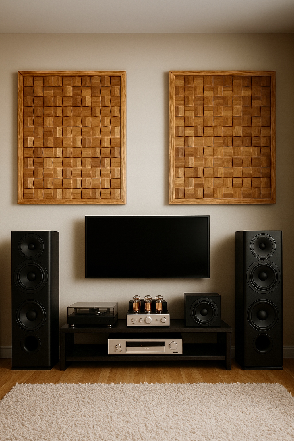 Природний акустичний дифузор, виготовлений з дерева твердого дуба, - це поєднання функціональності та естетики. Він складається з точно сформованих тривимірних елементів із змінною глибиною та кутом нахилу поверхні, розташованими в ефективній геометричній схемі. Завдяки своїй структурі вона ефективно відволікає звукові хвилі, зв'язуючи акустику кімнати, не вводячи надмірного поглинання.