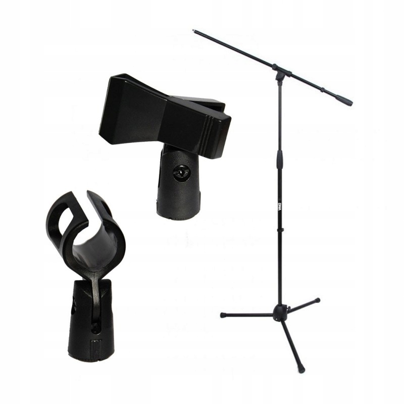 У набір також входить складна мікрофонна стійка високого класу, яка ідеально підходить для концертів і сценічних виступів, а також різноманітних заходів, що вимагають озвучення. Підставка повністю виготовлена зі сталевих труб, покритих порошковою фарбою класичного чорного кольору. Його основа складається з трьох складних ніжок, оснащених гумовими накладками, завдяки чому штатив дуже стійкий і не ковзає по землі. Верхня частина штатива регулюється в двох положеннях. Відповідне налаштування довжини плеча та кута його нахилу дозволяє оптимально відрегулювати висоту штатива відповідно до індивідуальних потреб кожного користувача. Щоб випадково не зачепитися за нещільно висить мікрофонний кабель, його можна протягнути вздовж трубок через спеціально розроблені затискачі, завдяки чому все виглядає дуже естетично.