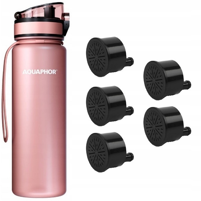 Портативний фільтр у форматі спортивної пляшки для людей, які ведуть активний спосіб життя та подорожують. Пляшка-фільтр AQUAPHOR видаляє хлор, важкі метали, алергени, покращує смак і запах води. "Ефектний і привабливий дизайн пляшки дозволяє використовувати її в будь-яких обставинах - як під час занять спортом, так і на прогулянці містом, в школі, в офісі або в літаку. Універсальна ємність 0,5 л забезпечує оптимальну кількість рідини протягом декількох годин без додавання додаткової ваги. Пляшка дуже легка, ви завжди можете мати її під рукою і втамувати спрагу в будь-який момент. Завдяки їй ви заощадите на покупці води під час авіаперельоту. Крім того, оксамитова поверхня флакона не дозволяє йому вислизати з рук, навіть не знімаючи рукавичок.