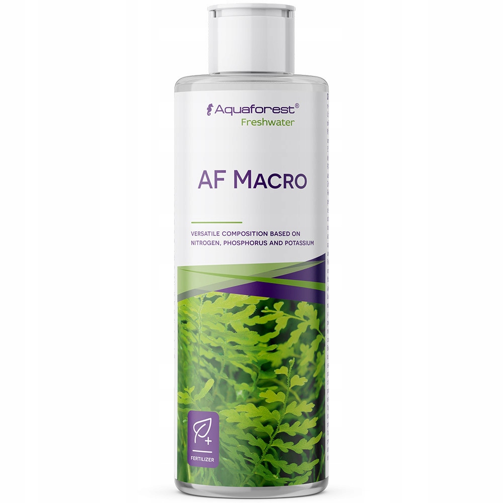 Макроелементи є основними будівельними елементами. Вони беруть участь в утворенні багатьох клітинних структур, білків і ферментів. Крім того, вони виконують роль носіїв і акумуляторів енергії і входять до складу нуклеїнових кислот. Симптоми дефіциту або надлишку конкретного інгредієнта залежать від конкретних функцій, які виконує рослина. Як правило, дефіцит якогось макроелемента проявляється уповільненим ростом, зростанням ослаблених пагонів і зміною кольору частин рослини. Надлишок викликає надмірний ріст, змінює колір листя на темно-зелений (у разі занадто великої кількості азоту), а вся рослина стає слабкою та сприйнятливою до будь-яких пошкоджень. AF Macro – це базове добриво, необхідне для правильного розвитку акваріумних рослин.