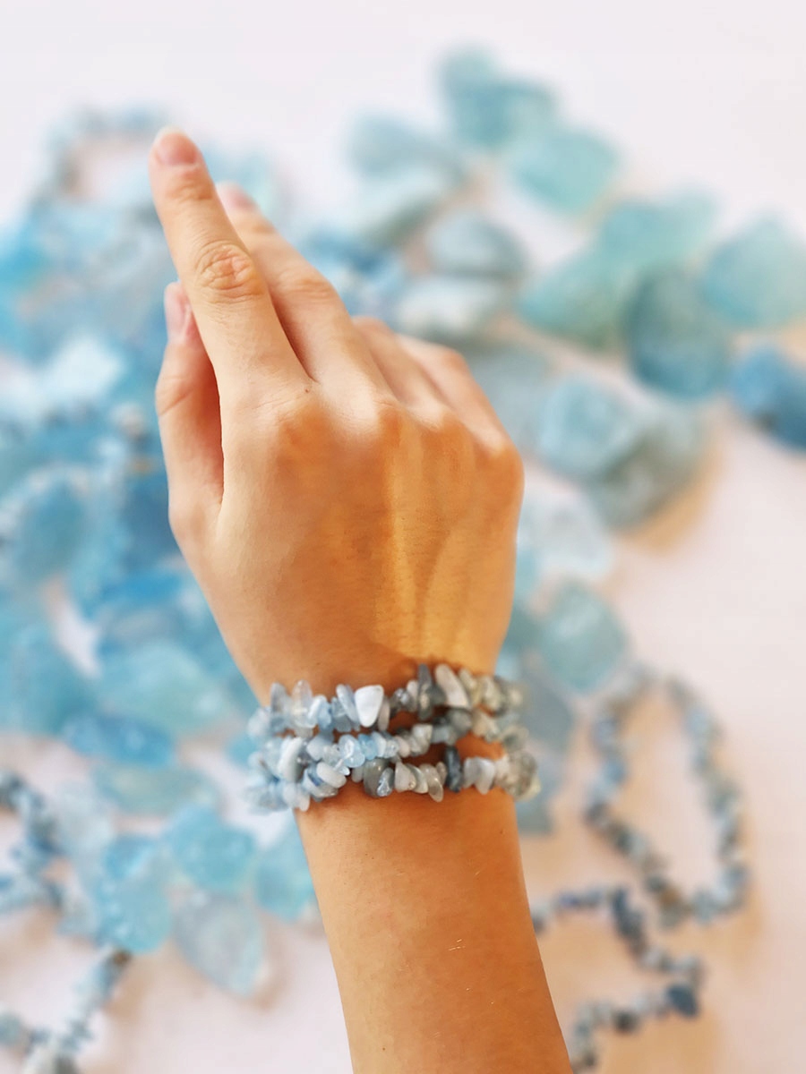 РАНІШНИЙ БРАСЛЕТ З НАТУРАЛЬНОГО КАМЕНЮ АКВАМАРИНУ