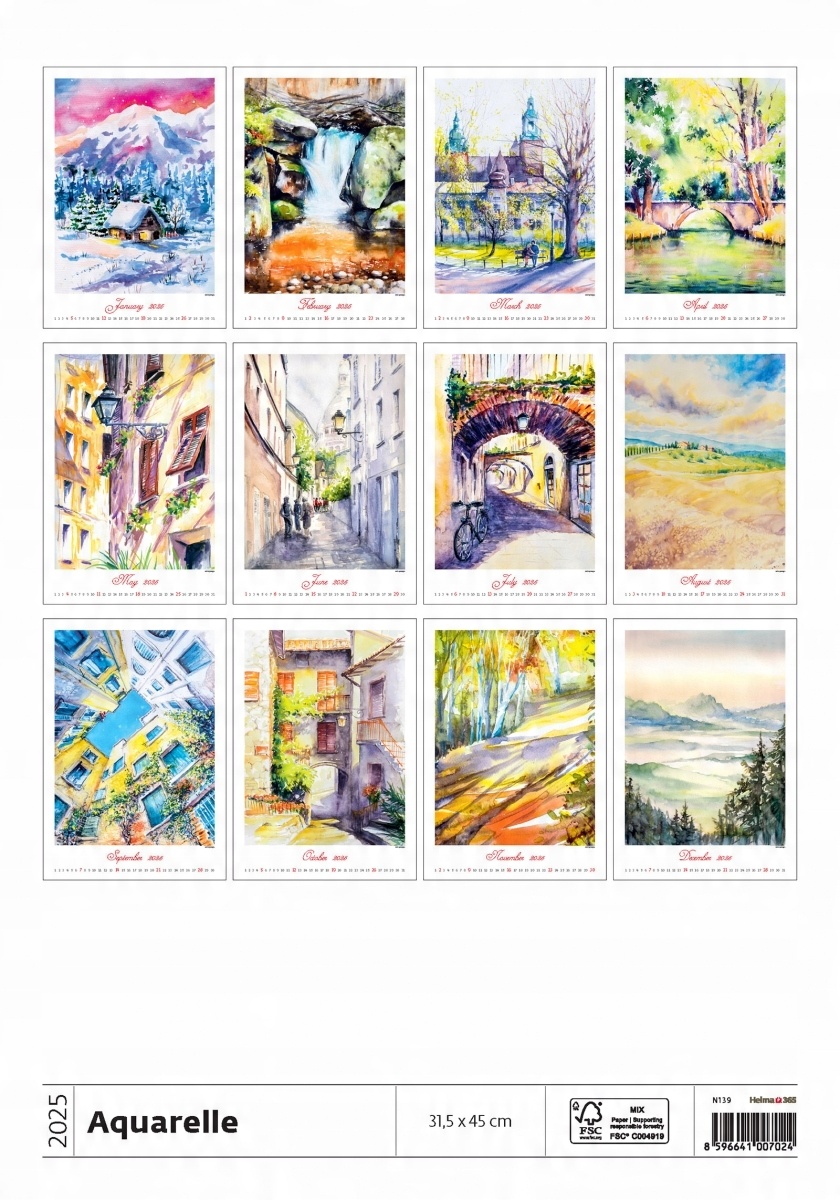 Календар AQUARELLE 2025 — це колекція з 12 чудових акварельних картин.