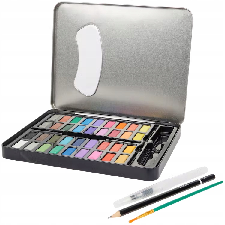 Акварельні фарби в насичені кольори. Завдяки ідеально підібраній консистенції кольори легко змішуються між собою, створюючи дивовижні ефекти. Акварель підійде як початківцям художникам, так і досвідченим художникам. Фарби поміщені в зручний пластиковий футляр з двома пензликами, що дозволяє малювати в дорозі та на вулиці.