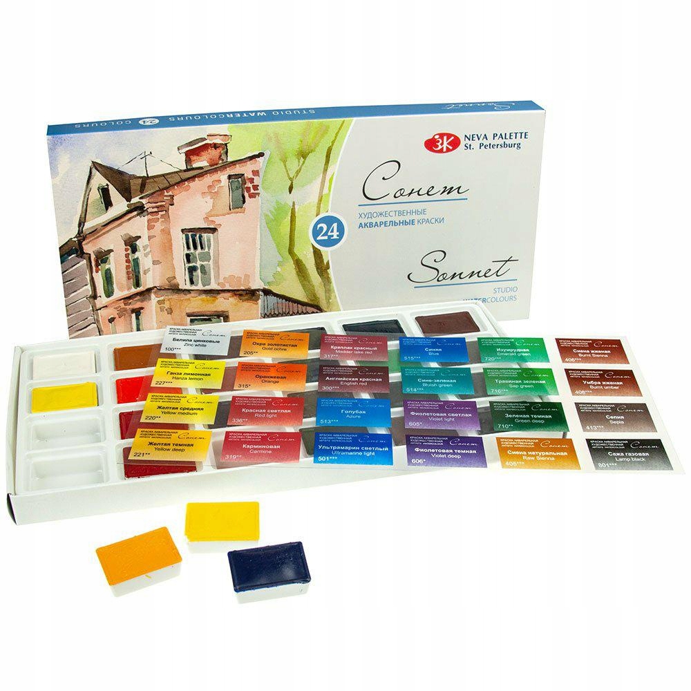 Акварельні фарби СОНЕТ 24 картон NEVSKAYA PALITRA