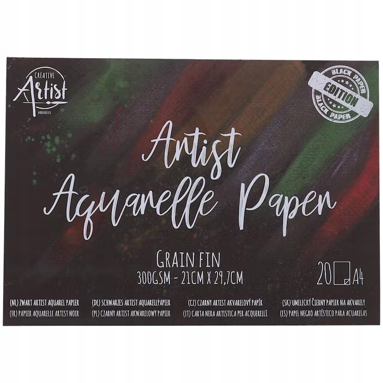 АКВАРЕЛЬНИЙ БЛОК А4 ЧОРНИЙ ПАПІР 20 аркушів 300 GSM