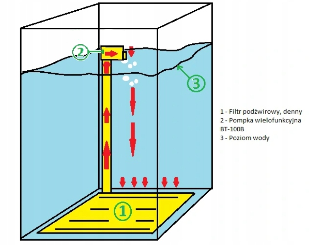 - набір включає Hailea BT- Насос 100B, який розподіляє воду по акваріуму, забезпечуючи підгравійну фільтрацію.