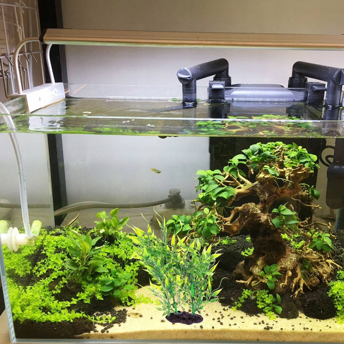 Цей продукт є акваріумною рослиною, яка підходить як для прісної, так і для солоної води, нетоксична та легко миється щодня. Ця акваріумна рослина виглядає як жива рослина, забезпечує рибам особистий простір і приносить рибам задоволення. Це створить гарний пейзаж для вашого акваріума.