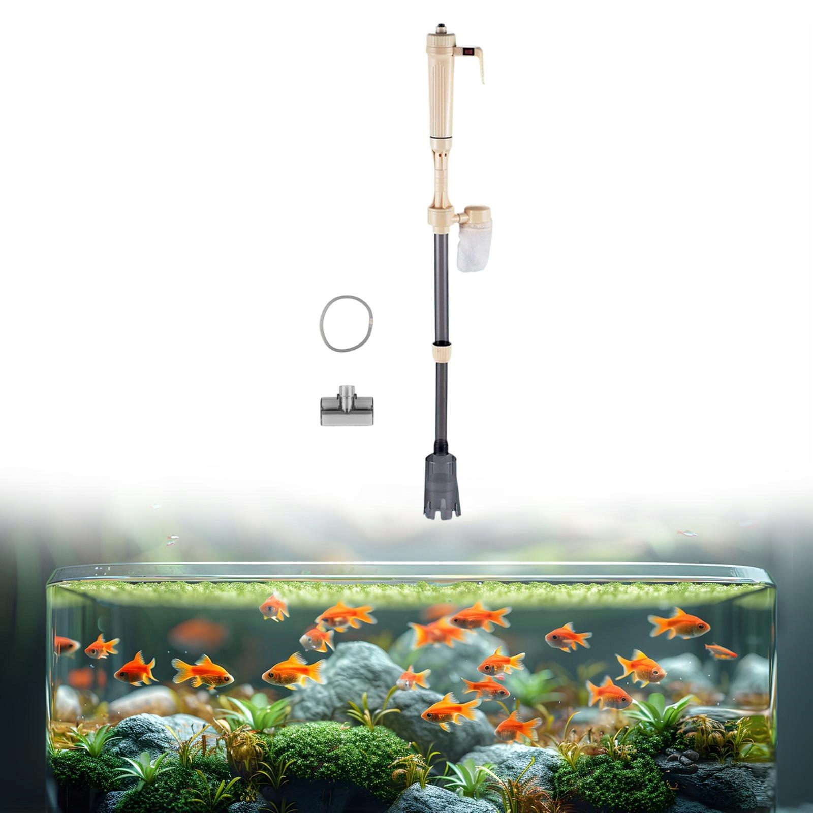 [Cleaning the aquarium]: The electric gravel vacuum cleaner has a high suction power, thanks to which it can easily absorb sediment, waste and residues from the bottom of the aquarium to keep water clean