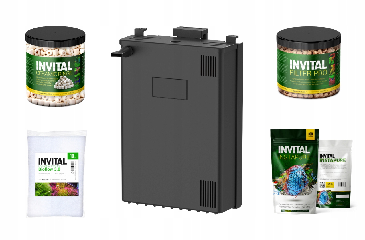 Фільтрування забезпечується надійною Invital Biofiltr з ємністю 210 л/год . Його простора конструкція дозволяє використовувати велику кількість фільтрувальних середовищ. Хоча основні фільтраційні носії включені в набір, ми настійно рекомендуємо доповнити/замінити матеріали більш високої якості (наприклад, Invitual Filter Pro або Invitial Insapure) для подальшого зміцнення властивостей фільтра.