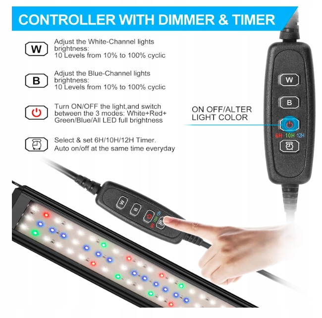 - АКВАРІУМНА ЛАМПА ПОВНОГО СПЕКТРУ RGBW - 3 КОЛЬОРИ Настрій: червоний + зелений + білий, синій або повністю біло-синьо-червоно-зелений світло впровадить денне або нічне світло в акваріуми та створить чудовий водний пейзаж. **ПРИМІТКА: ЗБЕРІГАЙТЕ СВІТЛО ПОДАЛЕК ОТ РОЗПРИЗКУВАННЯ ВОДИ!!!