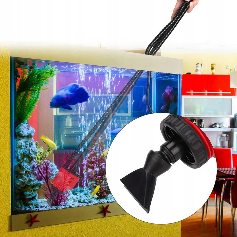 Цей очищувач акваріума поєднує в собі шість функцій: заміна води, видалення гравію, видалення наживки, фільтрація води, розпилення води та циркуляція води, задовольняючи всі ваші потреби в очищенні акваріума. Просто підключіть відповідний інтерфейс, щоб перемикати функції та зручно керувати пристроєм. Всмоктувальний отвір оснащено фільтром, який запобігає засмоктуванню дрібних рибок або крабів. Практичний набір для чищення, який підходить для великих і малих акваріумів, резервуарів для черепах, прісноводних і морських середовищ.