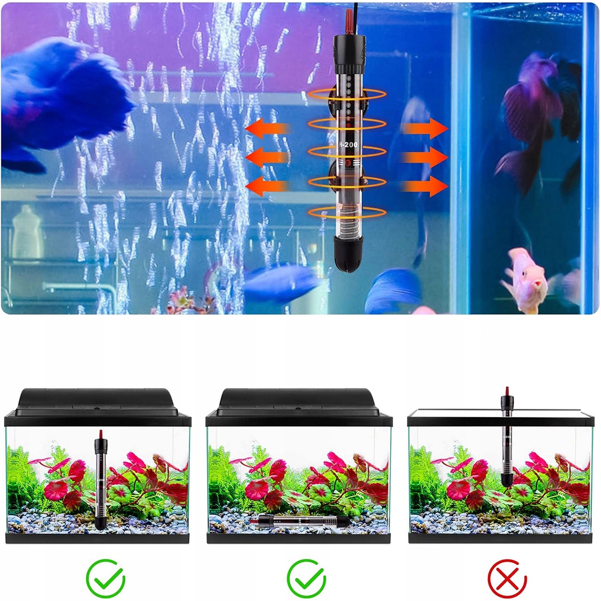 ⭐Акваріумний обігрівач 50 Вт, регульований нагрівальний елемент, чорний