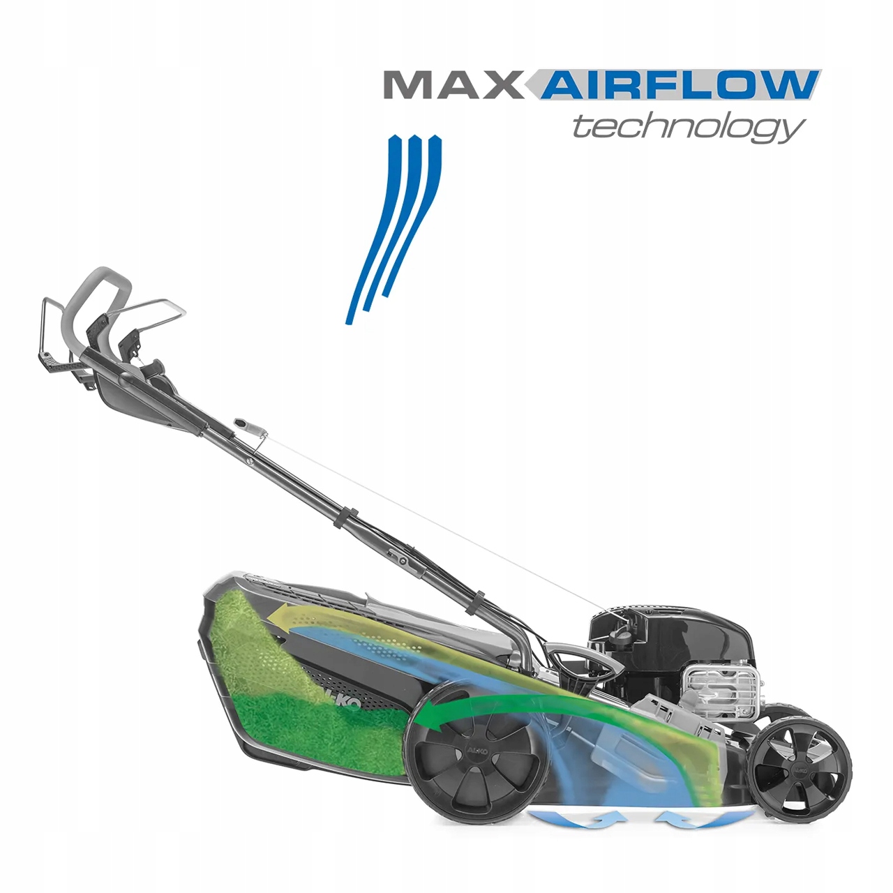 Технологія Maxairflow забезпечує оптимальний транспорт трави до сміття та її більш ефективну наповнення. Це означає, що ви можете косити довше, перш ніж контейнер потребує спорожнення.