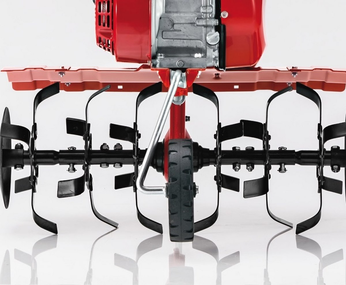 Рихливі ножі спеціальної форми в поєднанні з потужним двигуном гарантують ефективну підготовку ґрунту - робоча частина має 6 робочих зірок, загартовані ріжучі ножі, встановлені на обертовому валу, які автоматично вгризаються в ґрунт.