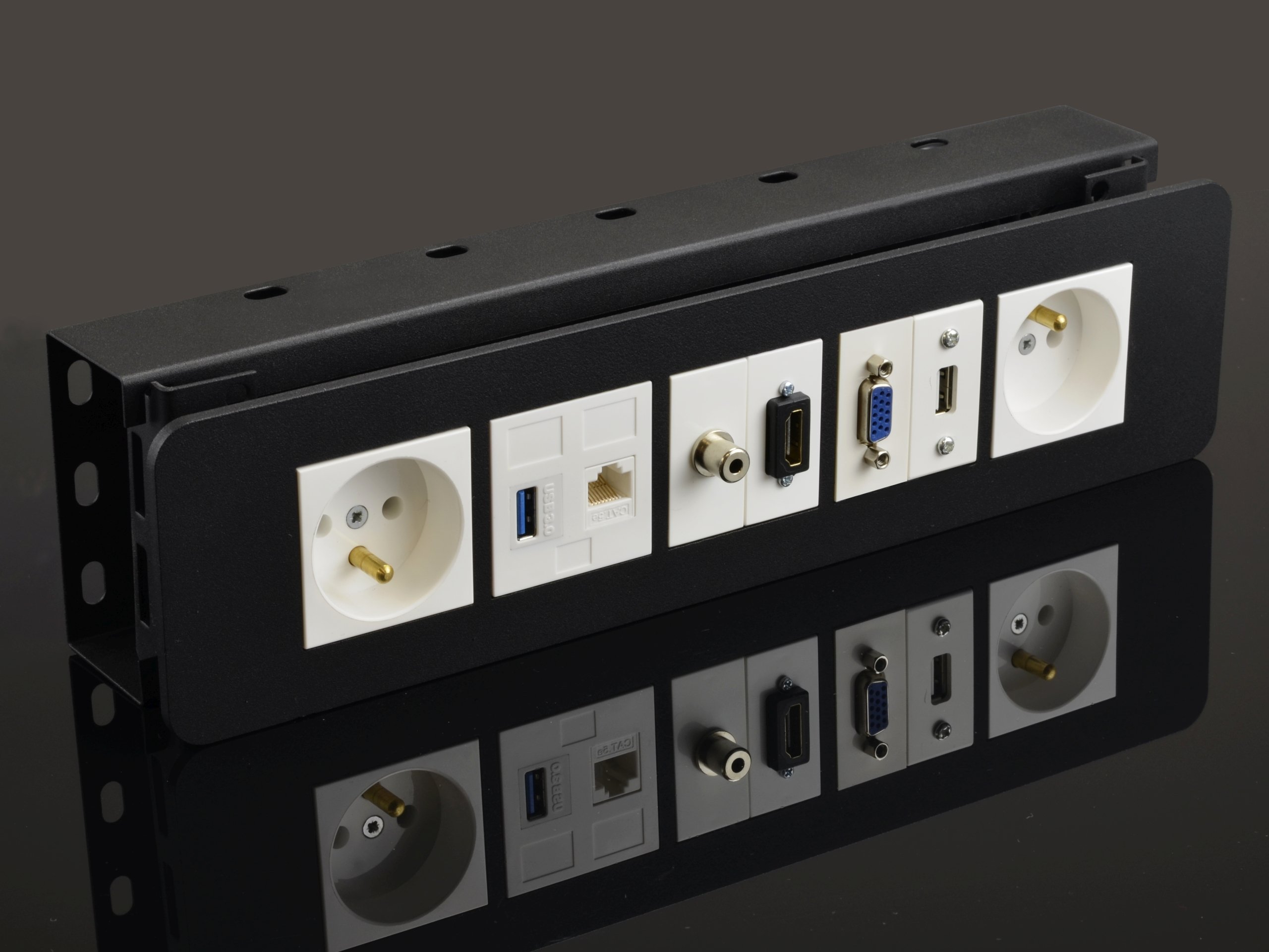 Універсальна система кріплення аксесуарів, що дозволяє практично будь-яку конфігурацію модулів, розеток, роз'ємів і т.д. в готовий комплект.