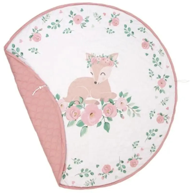 Килимок чудового темно-рожевого кольору з візерунком оленя та квітів. Килимок для іграшок виготовлений з бавовни - одна сторона однотонна з гарним стьобаним візерунком, інша сторона - ніжний атлас з принтом.