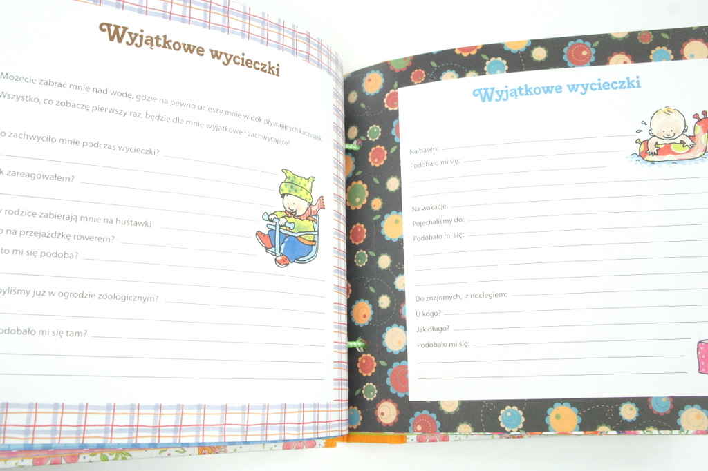 Поява нового члена сім'ї призводить до революційних змін, які стосуються всіх аспектів життя новоспечених батьків. Насправді з цього моменту кожен крок їх сина чи дочки супроводжуватиме неймовірні емоції, які варто запам'ятати назавжди. Цей альбом дозволить батькам збирати та зберігати інформацію, спогади та почуття, пов’язані з першими роками їхнього життя як сім'ї. Всередині альбому, в спеціально розроблених конвертах, батьки можуть зберігати фотографії, листівки на день народження та будь -які інші сувеніри, які через роки дозволять їм знову відчути найсильніші емоції. Альбом, наповнений спогадами, також буде безцінним подарунком для їх дорослого дитини.