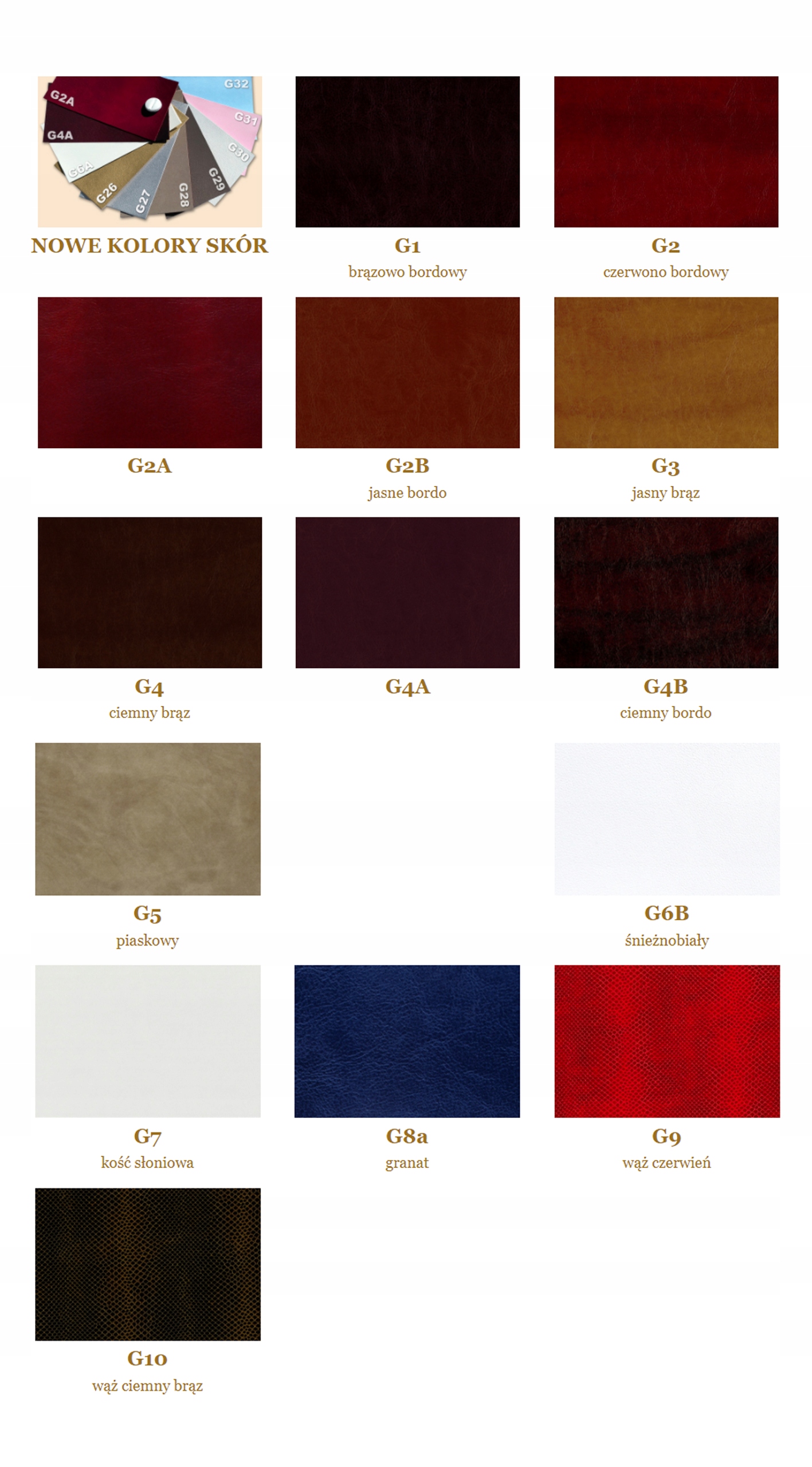 Ми пропонуємо понад 30 різних кольорів вишуканої шкіри, представлених у прикладі нижче.