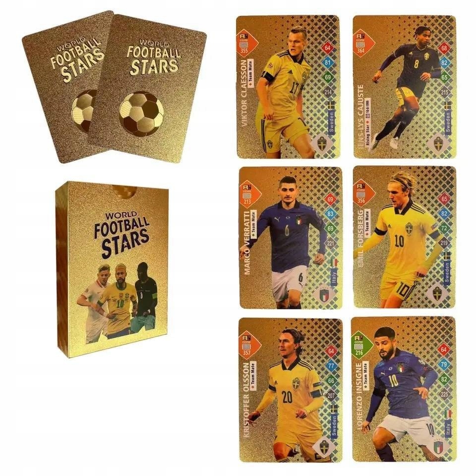 Відкиньте все, що ви думали знати про колекціонування футбольних карток. Ми представляємо останнє видання колекції бестселерів листівок, тепер у сліпучому золотому варіанті! Наші картки – це не просто додаткові елементи до вашої колекції – це справжні витвори мистецтва, які зроблять вашу колекцію сяючою, як ніколи раніше.