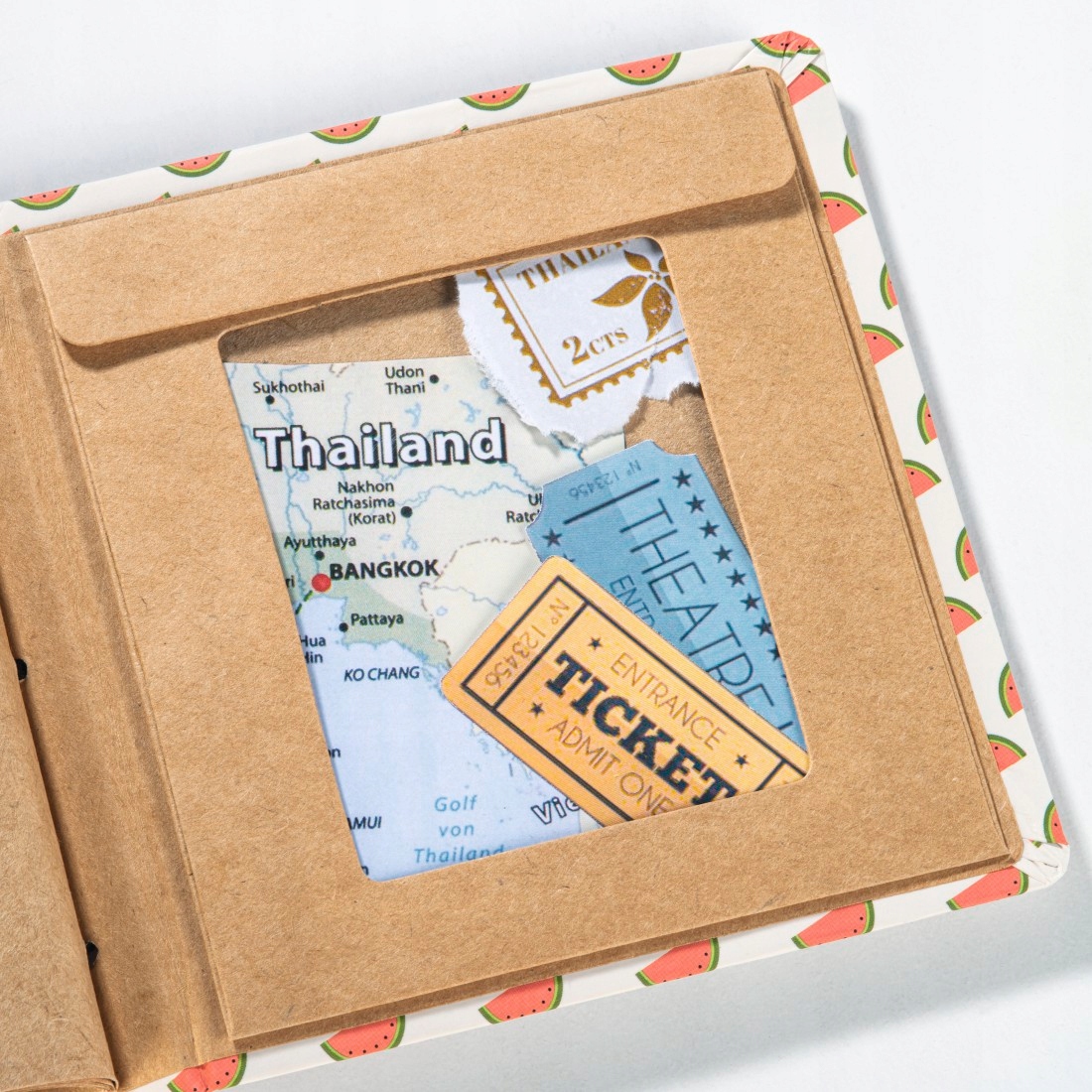 - На кінці альбому є конверт для зберігання дрібних сувенірів, таких як квитки, монети та ін.
