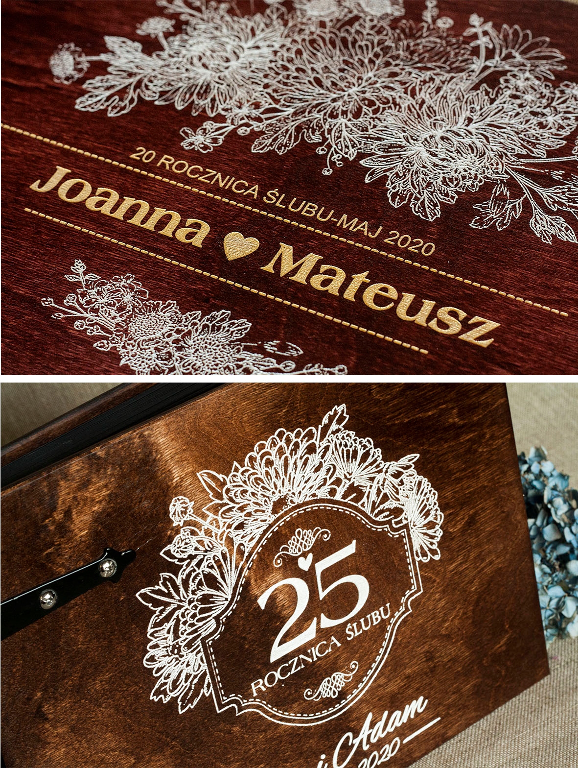 Ви можете надіслати власну графіку, яка буде вигравірувана на обкладинці дерев’яного фотоальбому – пам’ятайте про відповідну якість, файли надто низької якості не приймаються.