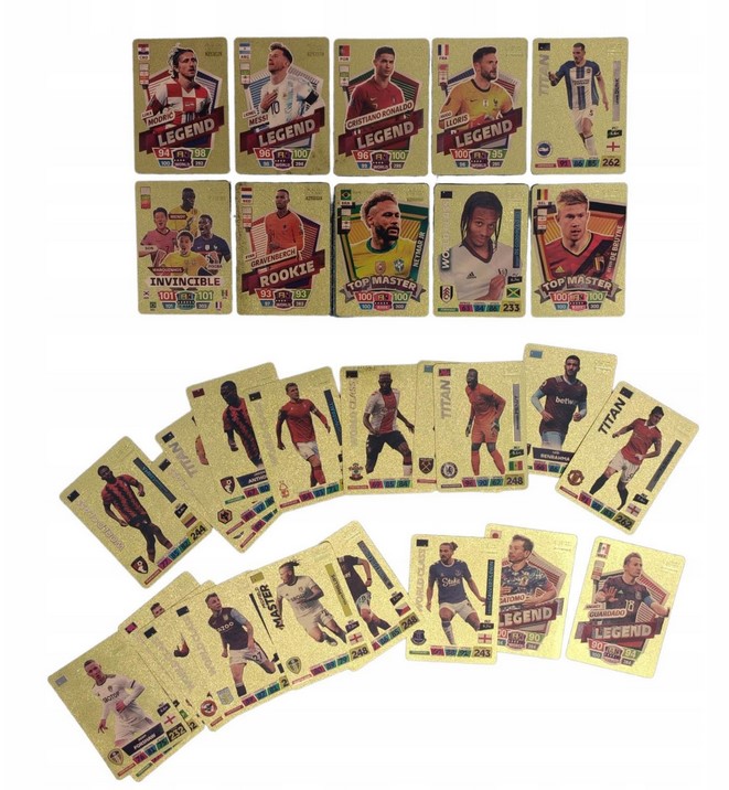 - Набір містить 10 карток, включаючи спеціальні картки, такі як: TOP MASTER, LEGEND WORLD CLASS, TITAN, ROOKIE.