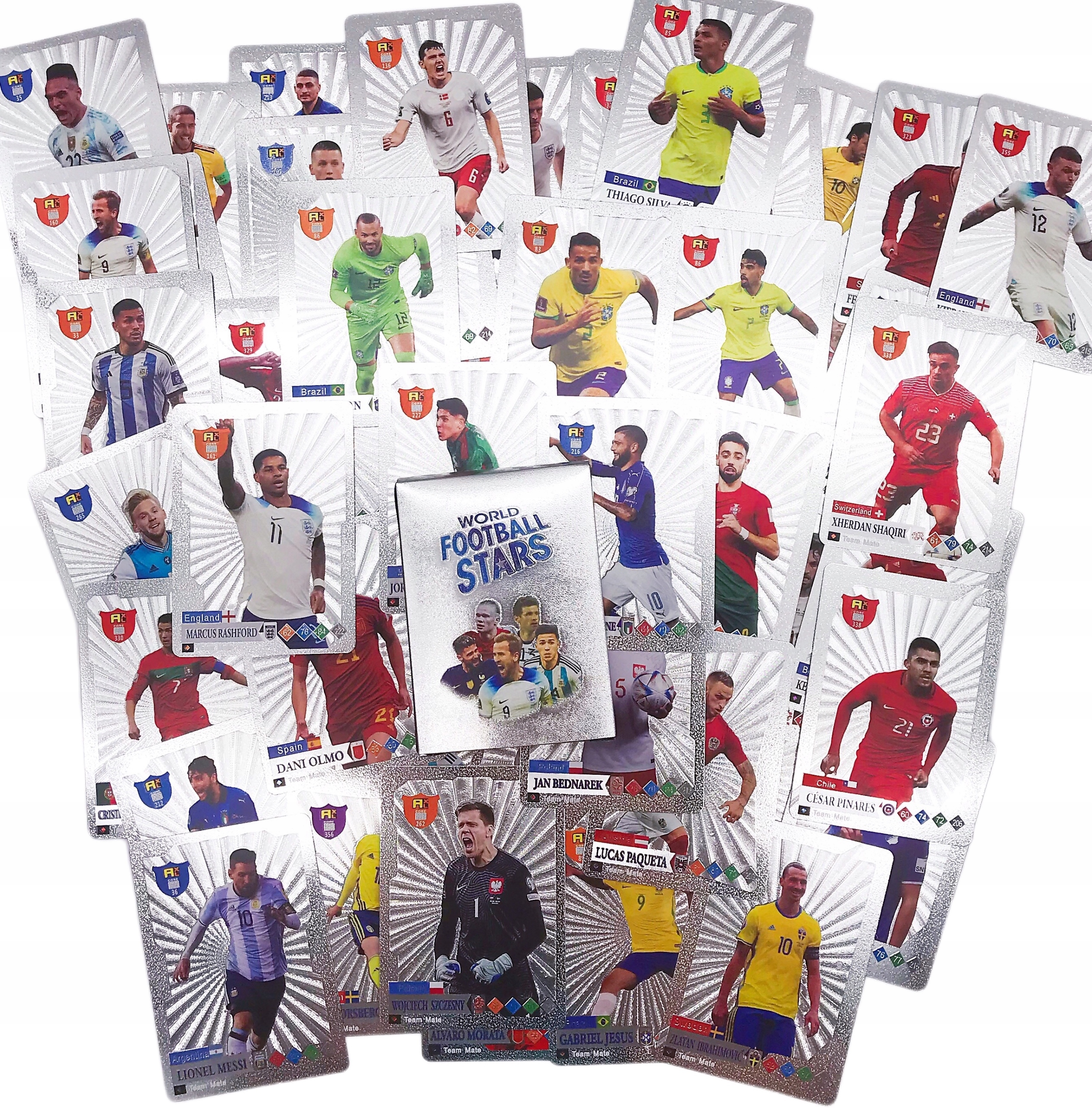 - 55 блискучих футбольних карток у вибраному Колір: