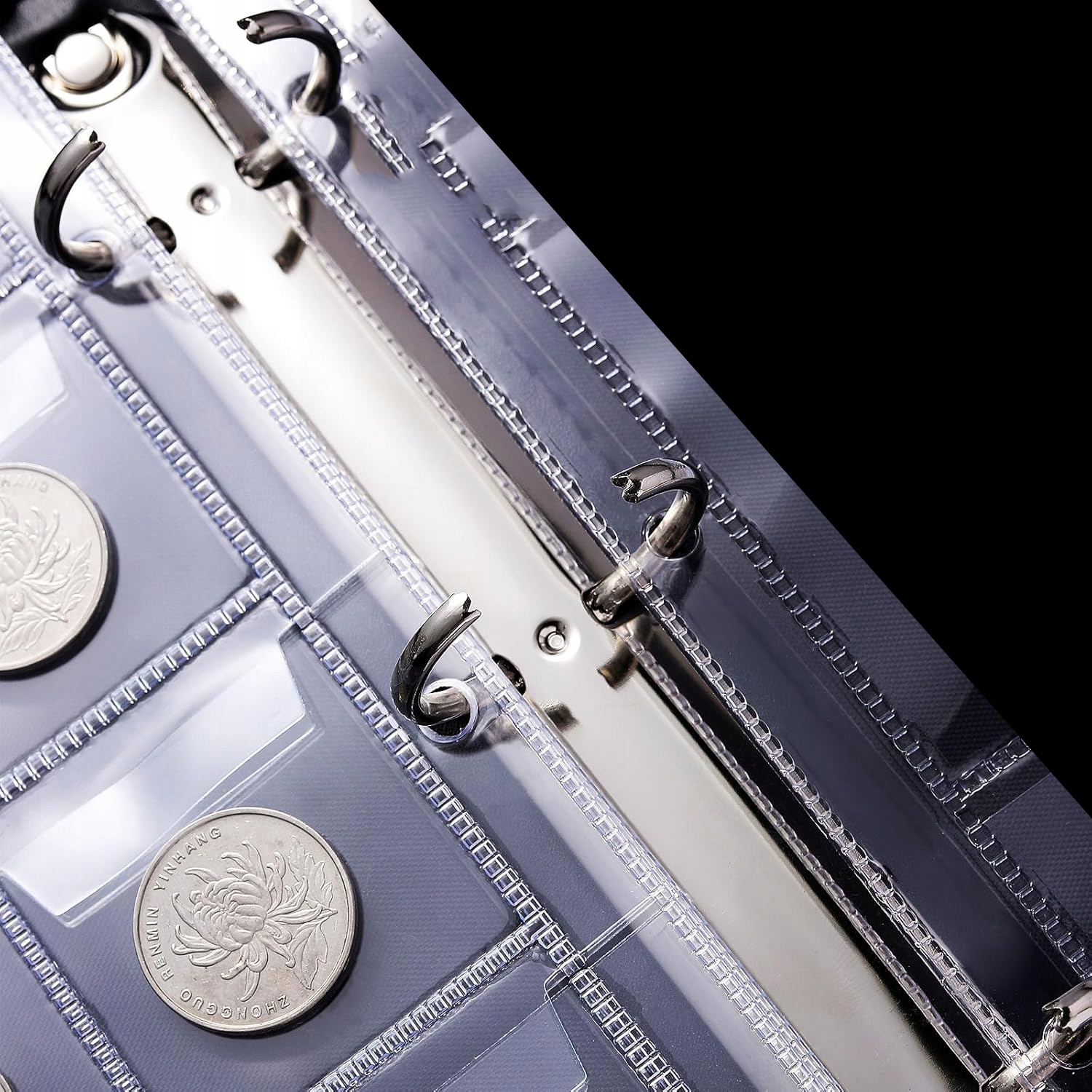 💖💖💖 Стильний дизайн та високоякісний матеріал -наш альбом монет виготовлений із стильної чорної ребристої шкіри PU. Це не тільки естетично приємно, але й водонепроникний та пилозахисний, що робить його ідеальним вибором для вашої дорогоцінної колекції монети. Прозорий інтер'єр ПВХ альбому забезпечує оптимальну видимість, що дозволяє відображати свою колекцію. Подивіться самі самі стильні та практичні функціональні можливості нашого альбому монети.