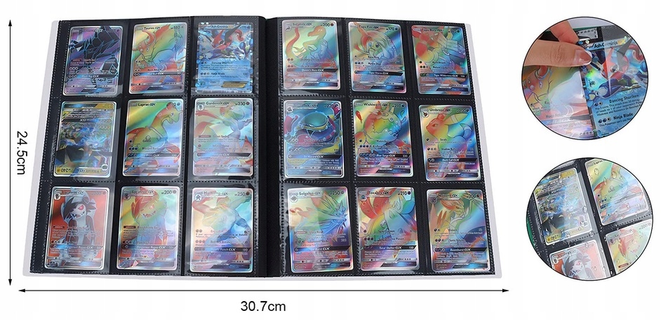 - Розміри кишені 9 см x 6,5 см - ідеально підходить для карток Yu-Gi-Oh, футбольних карток (Panini, Topps), Pokemon та багатьох інших. Альбом також чудово підходить для фотографій розміром 54 x 86 мм, 50 x 76 мм, наприклад, Instax або Polaroid!