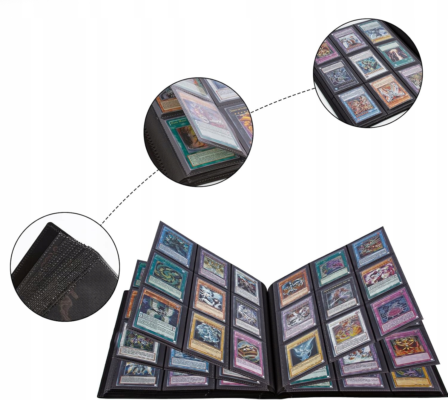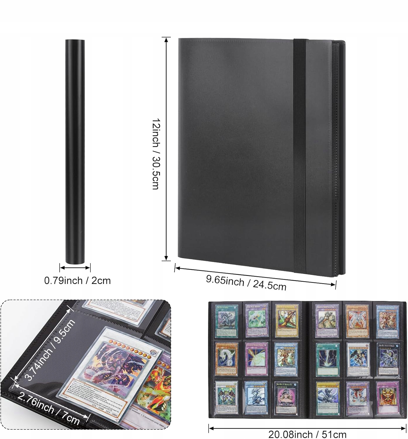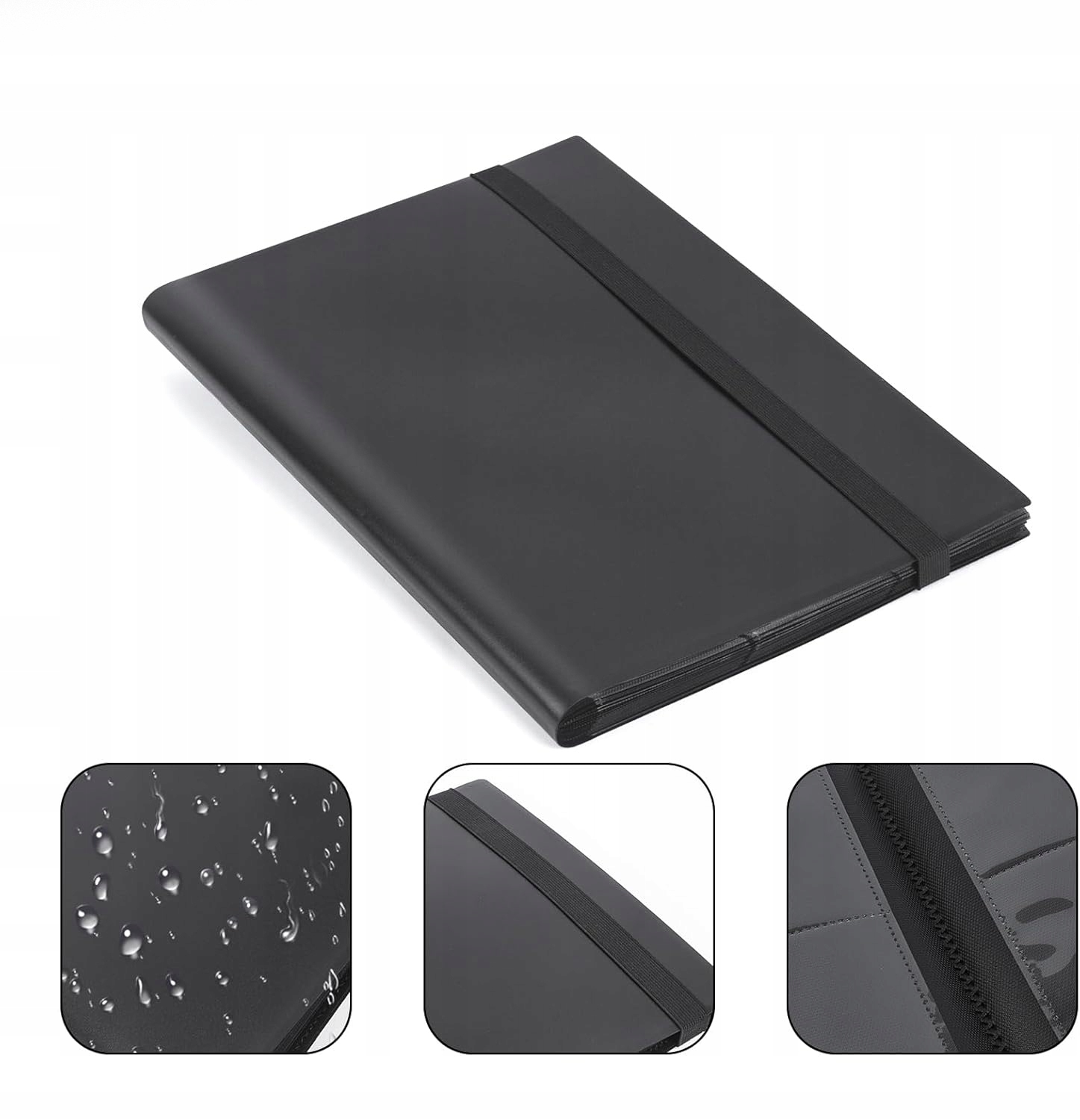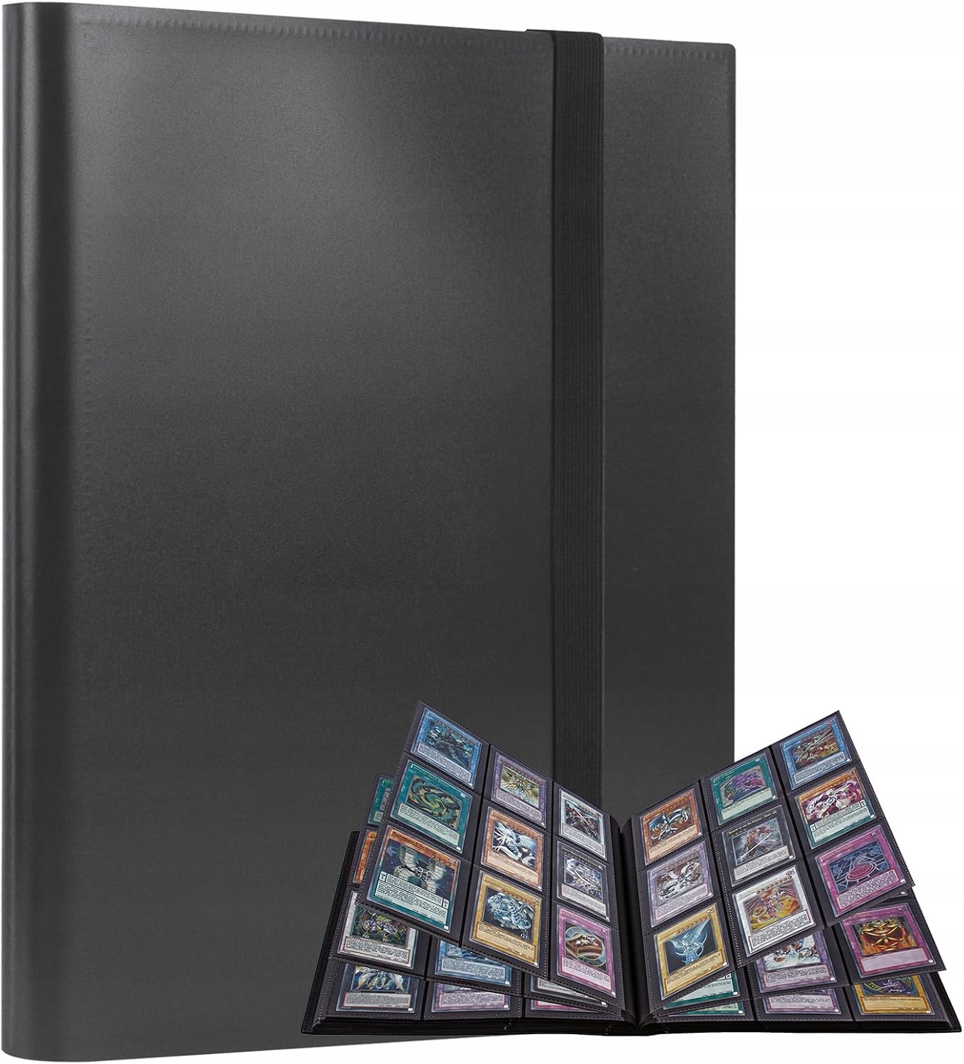 💳[ДЕТАЛІЗОВАНИЙ ДИЗАЙН]:Колекційна папка для карток чорного кольору з еластичною стрічкою має бічні кишені, які надійно тримають картки на місці, і еластична стрічка, яка утримує папку закритою та запобігає випаданню карток.