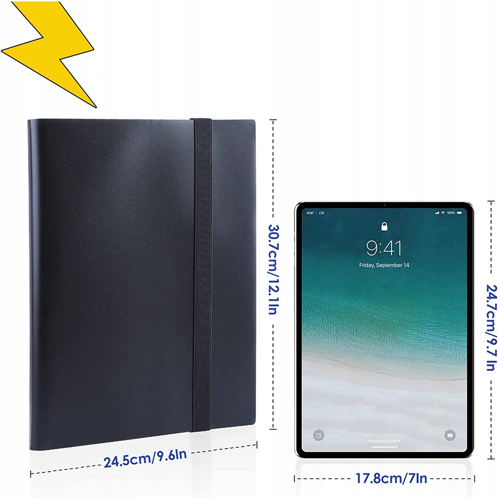 💳 [РОЗМІР ПРОДУКЦІЇ]: Вишукана та високоякісна чорна папка для колекційних карток з еластичною стрічкою розміром 30,7 см * 24,5 см, з кишенею для карток розміром 9,5 см * 7 см