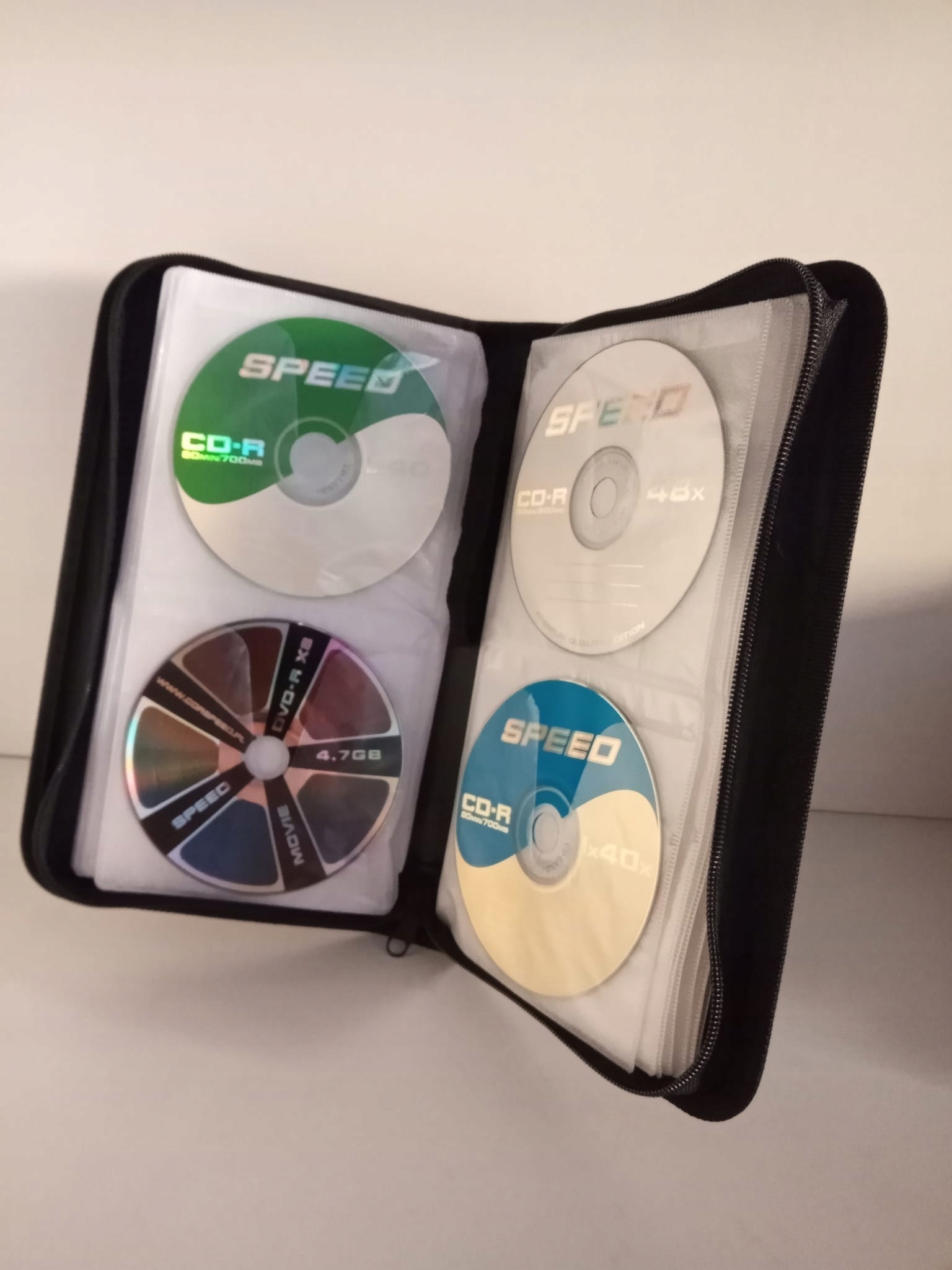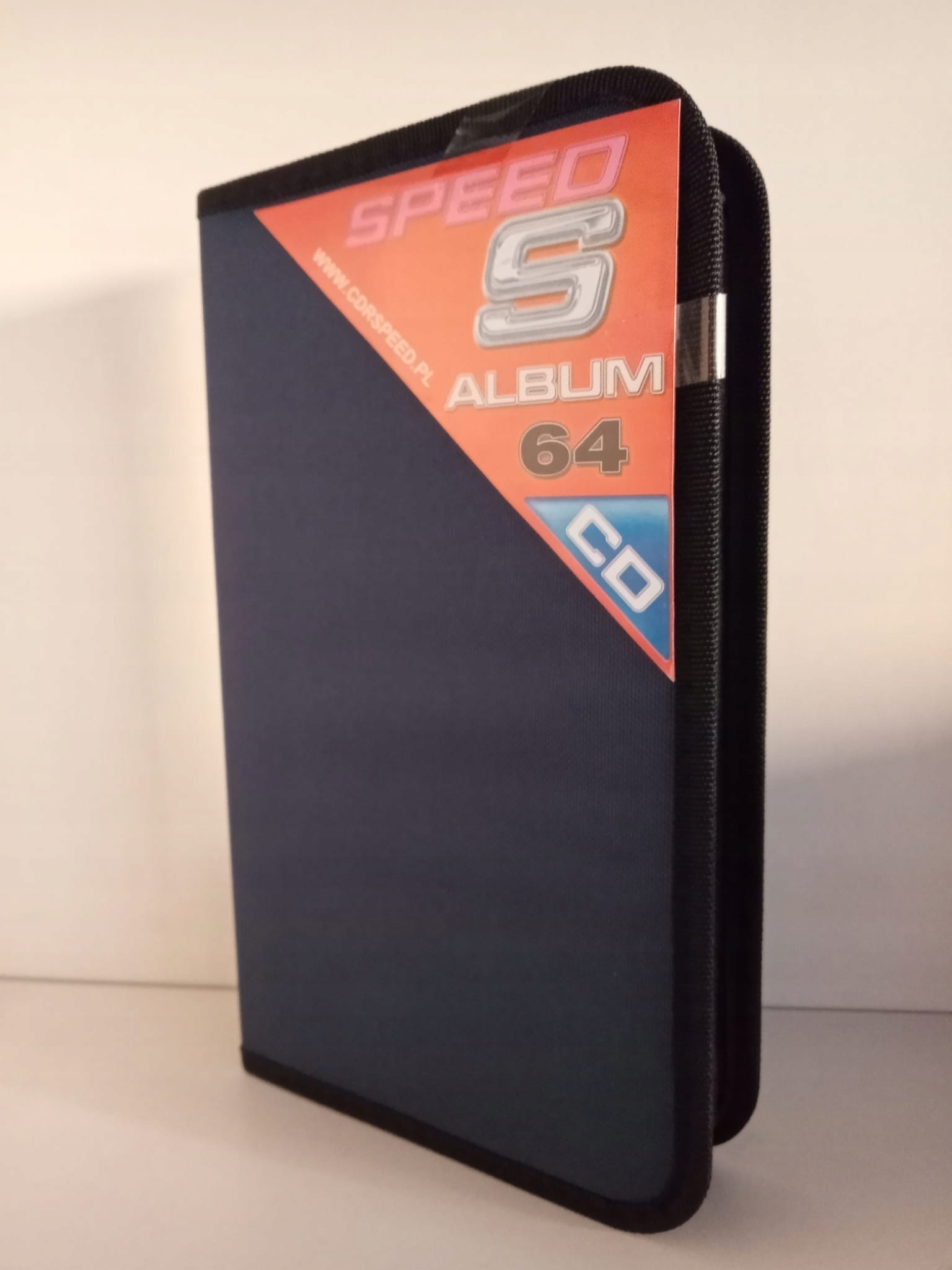 Дуже зручний альбом невеликого розміру на 64 компакт-диски виготовлений з високоякісного матеріалу, який надійно захищає наші компакт-диски. Вставки виготовлені з флісу, який додатково захищає дошки від подряпин. Альбом застібається на блискавку, завдяки чому в наші платівки не потрапить пил і жодна з них не випаде під час переміщення.