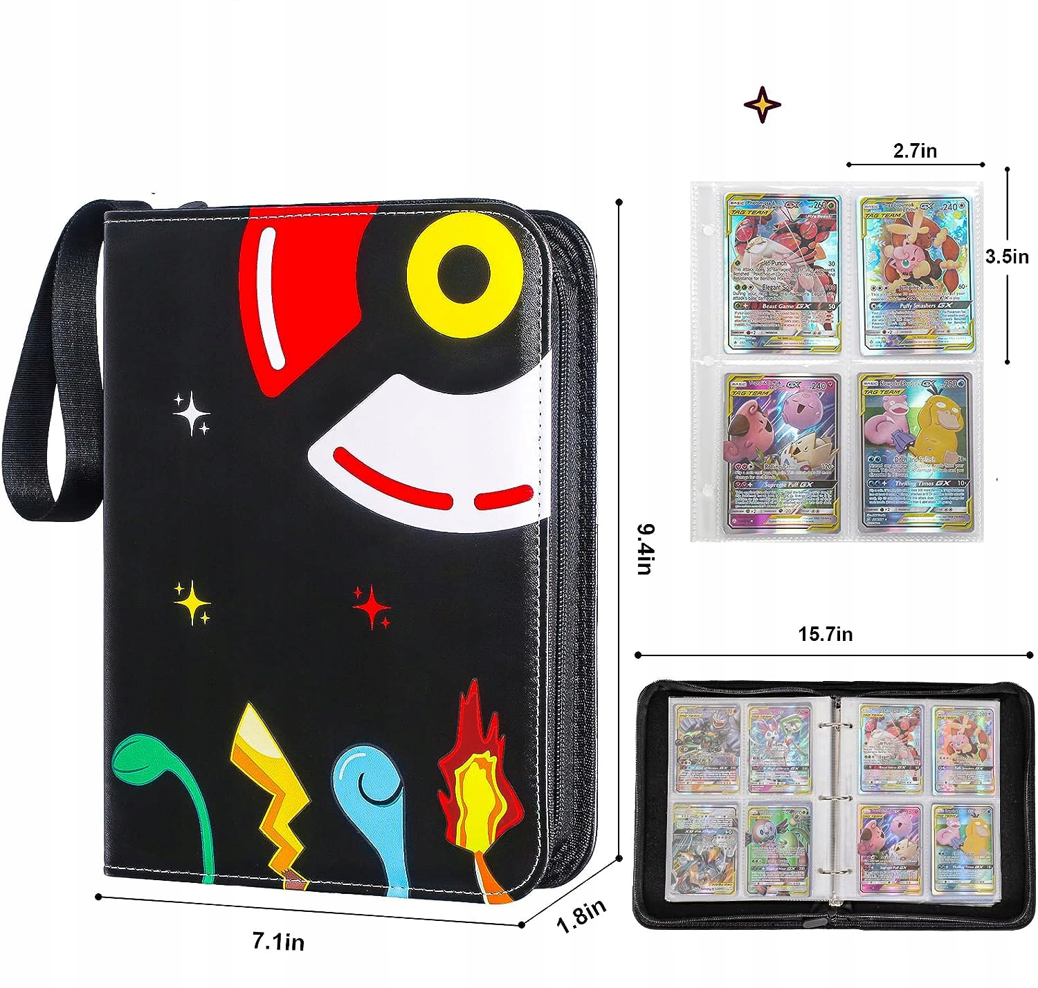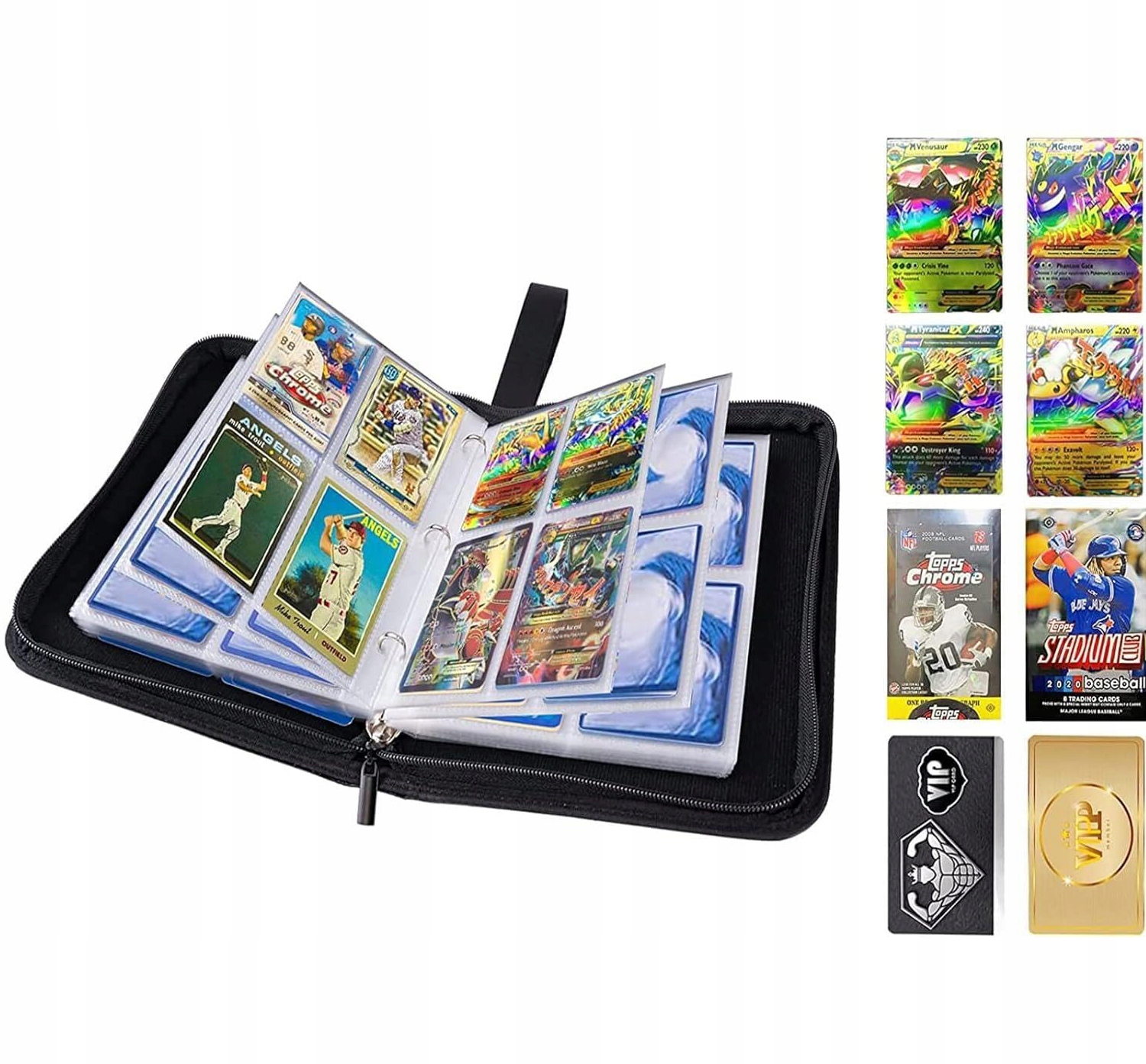 ✅Має колоду на 50 сторінок із 4 кишенями, у кожній кишені по 8 карток, 4 спереду та 4 ззаду, і має достатньо місця для впорядкування всіх карт , загалом вміщує 400 картокдля колекційних карткових ігор.
